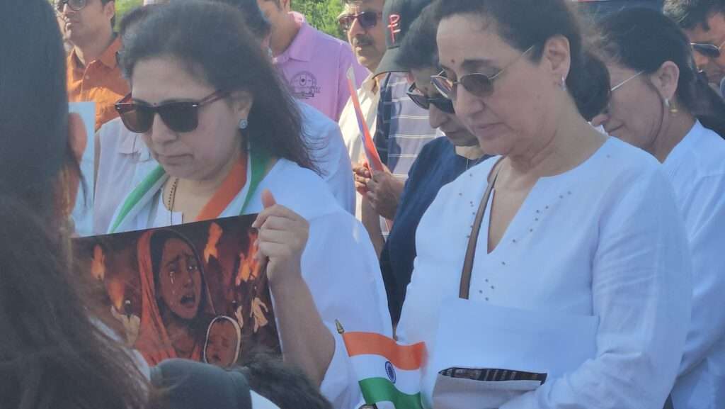 Participants held placards with messages such as “Stop Hindu Genocide,” “USA Stands with India Against Terror,” “Hindu Lives Matter,” “Indo-Americans Against Terrorism,” and “We Will Never Give in to Fear.” Many wore Tilak as a mark of spiritual and cultural identity, applied by volunteers at the vigil.