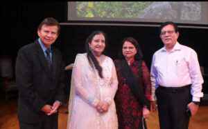 The evening began with the traditional invocations of Ganesh and Saraswati Vandana, setting a spiritual tone for the program. In a heartfelt moment, Dr. Shah honored the special guests and supporters who had contributed to both the current event and previous initiatives. Among the family members in attendance were her two sons, Dr. Ravi Shah and Mr. Sagar Shah, along with her daughter-in-law, Lorie Shah, and grandchildren, Sunjay and Leila Shah, who participated in the prayer and recognition ceremony.